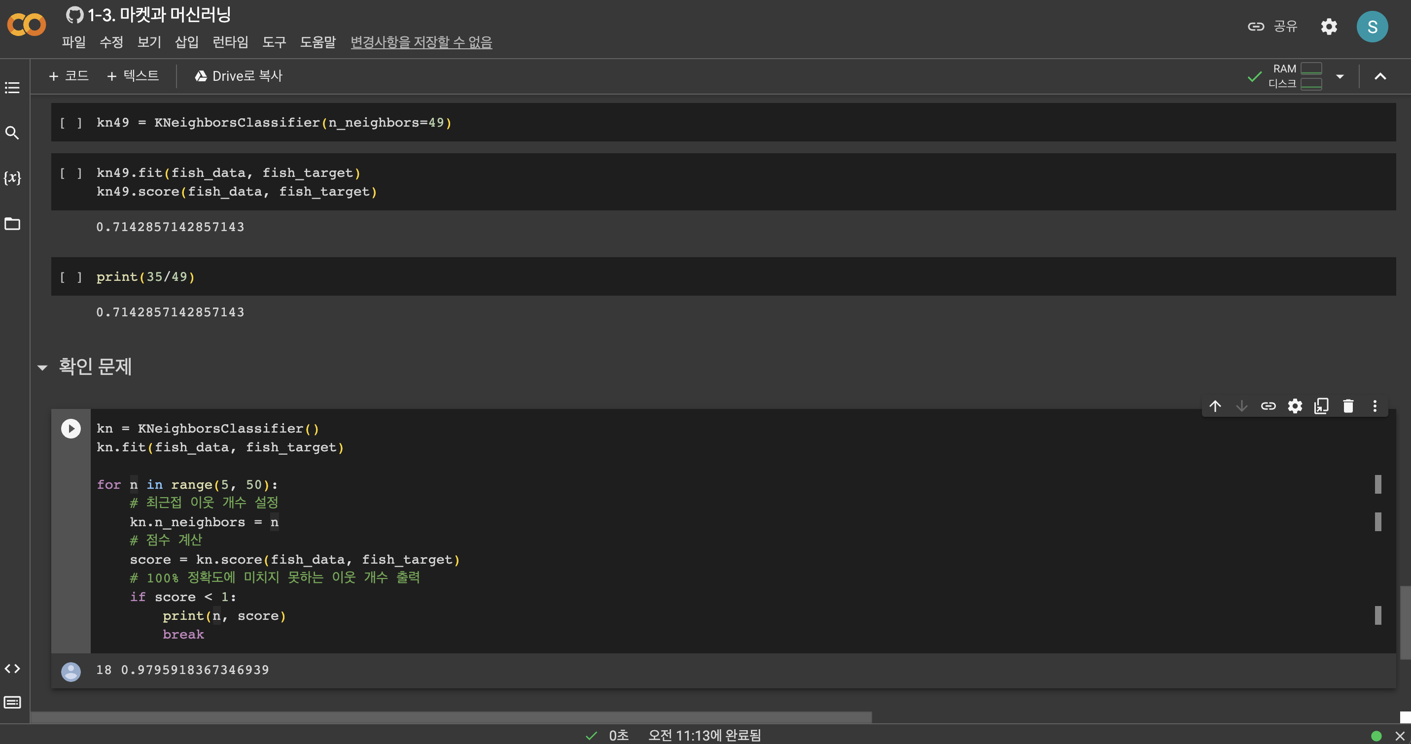 - [Google Colab] 예제 소스: https://colab.research.google.com/github/rickiepark/hg-mldl
