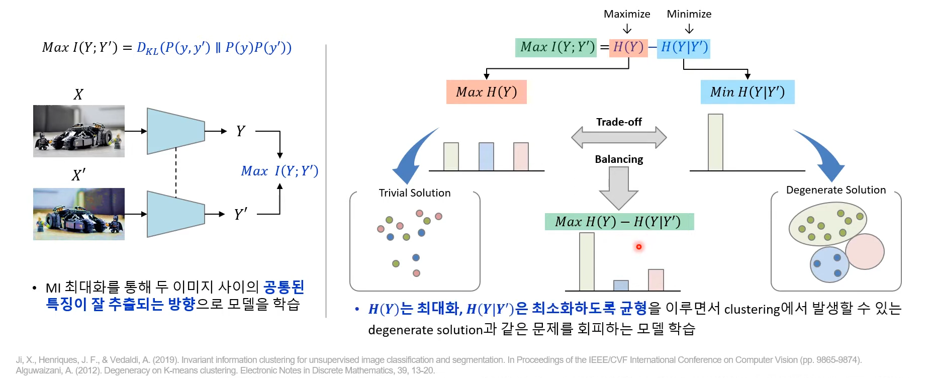 - ๋ฐ๋ผ์ Unsupervised semantic segmentation์ ์ต์ ์ฐ๊ตฌ๋ฅผ ํ์ ํ๊ธฐ ์ํด์๋ mutual information์ ๋ํ ์ดํด๊ฐ ํ์ํจ.